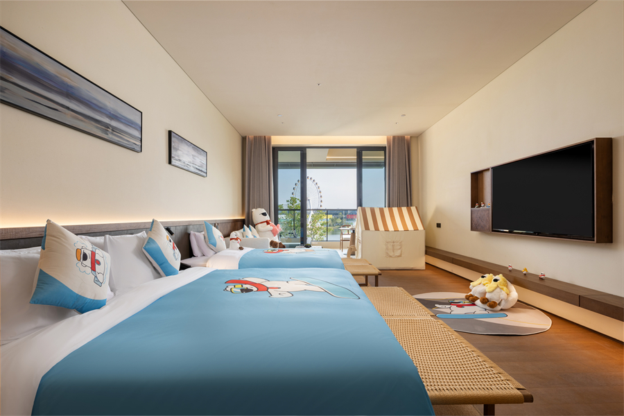 此次套餐房型为星梦亲子房,房间面积为47.6㎡,一共8 间,专为家庭设计,房间内布置充满童趣,各类亲子设施齐全,为亲子家庭打造欢乐的度假空间。