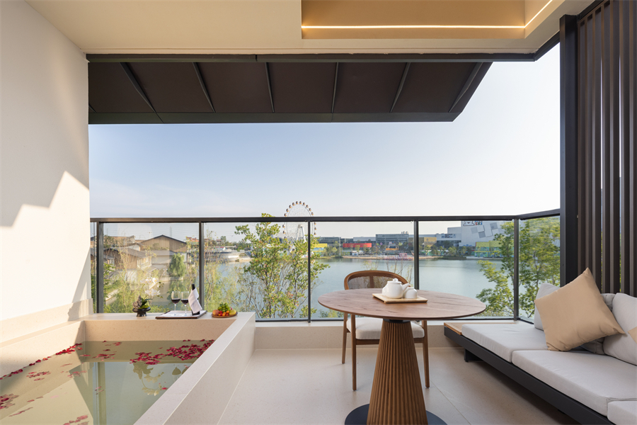 每间房间都带有一个专属阳台,阳台上配备了温泉泡池,这可是该套餐的一大亮点!在你入住之前,会有专人提前蓄好温泉水,你无需费心等待,入住后就能随时享受舒适的温泉。