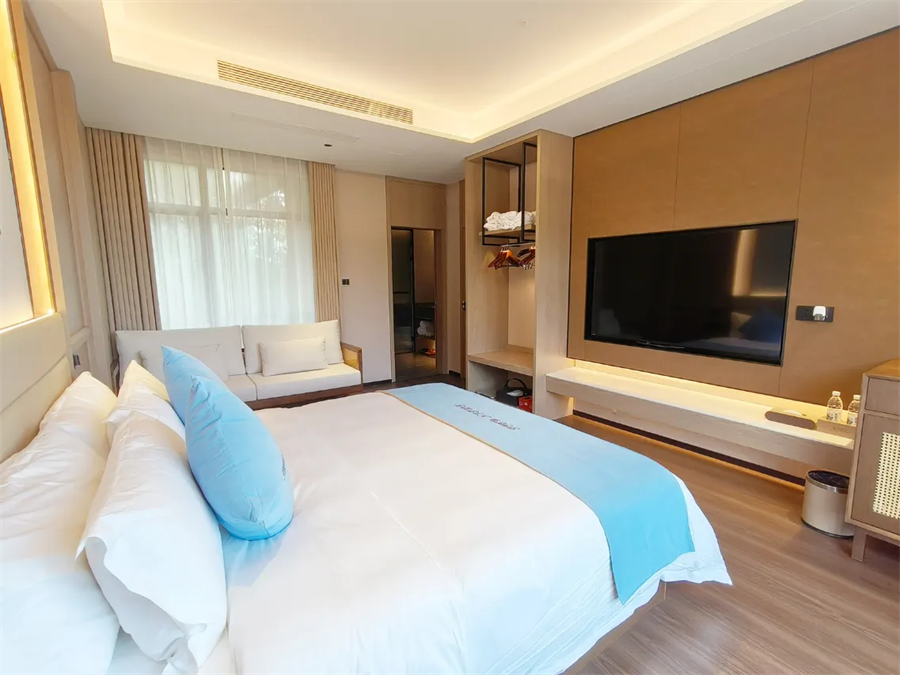 步行 5 分钟达恐龙贝乐园,地暖与防滑设施适配家庭出行。晨起林间漫步、暮时私汤疗愈,尽显归隐之趣。