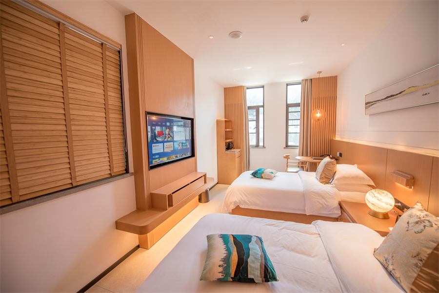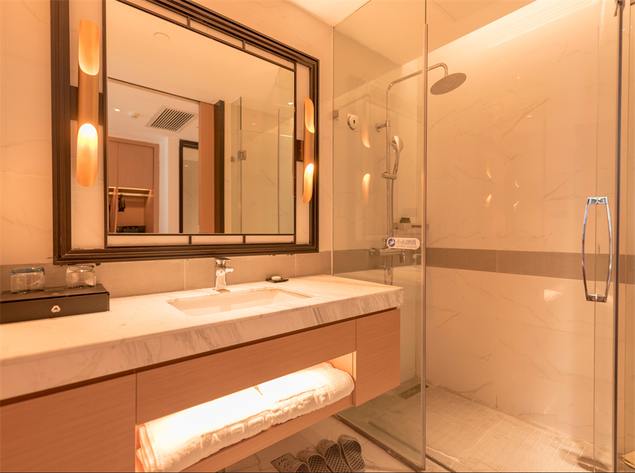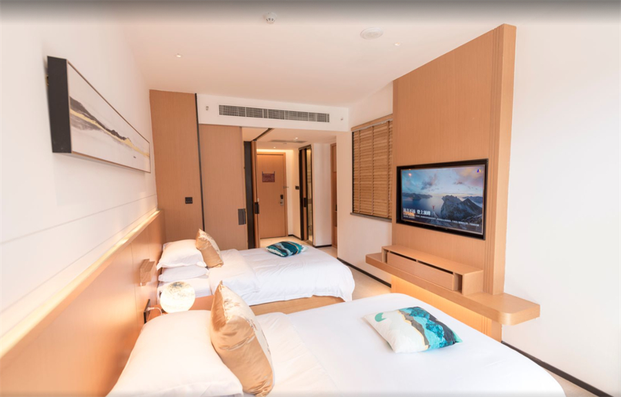 酒店房间里有智能控制系统、进口洁具,24小时热水、中央空调全配齐,住得超舒服。免费WIFI、24小时前台、免费停车场都有。