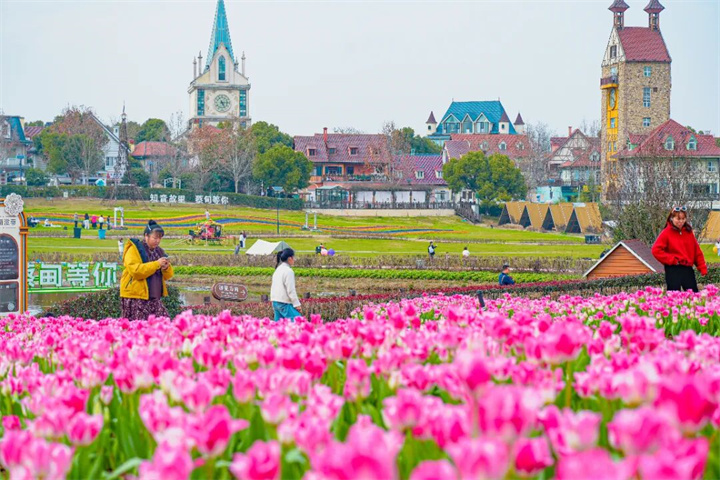 赏花地点:四季花海:郁金香、雏菊、花毛茛、角堇等;电音舞台附近:早樱。