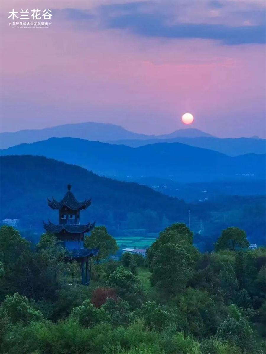东依木兰湖,西连木兰山,春天里,百花齐放,风光旖旎。木兰花谷一年12个月中10个月有花有果,银杏、茶花、紫薇、火棘、木槿、含笑等,果树有石榴、枣树、山楂、柿子、板栗、橘子、柚子、木瓜等。