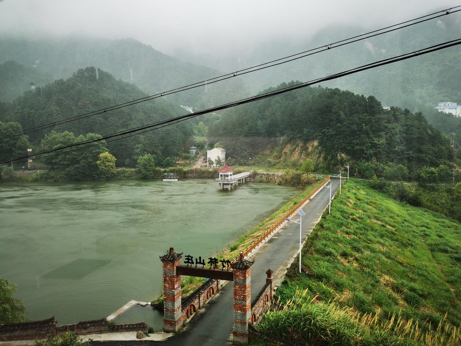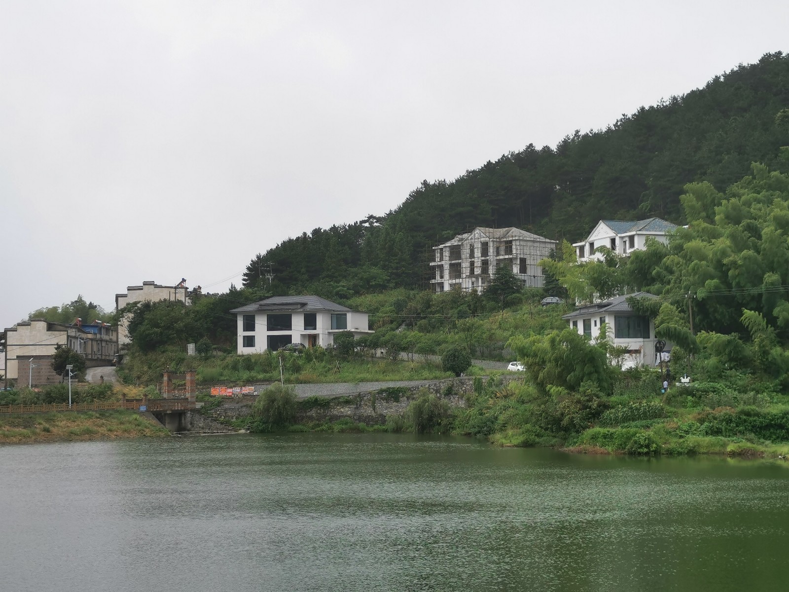 民宿门前就是龟峰湖,远处正对着龟峰山