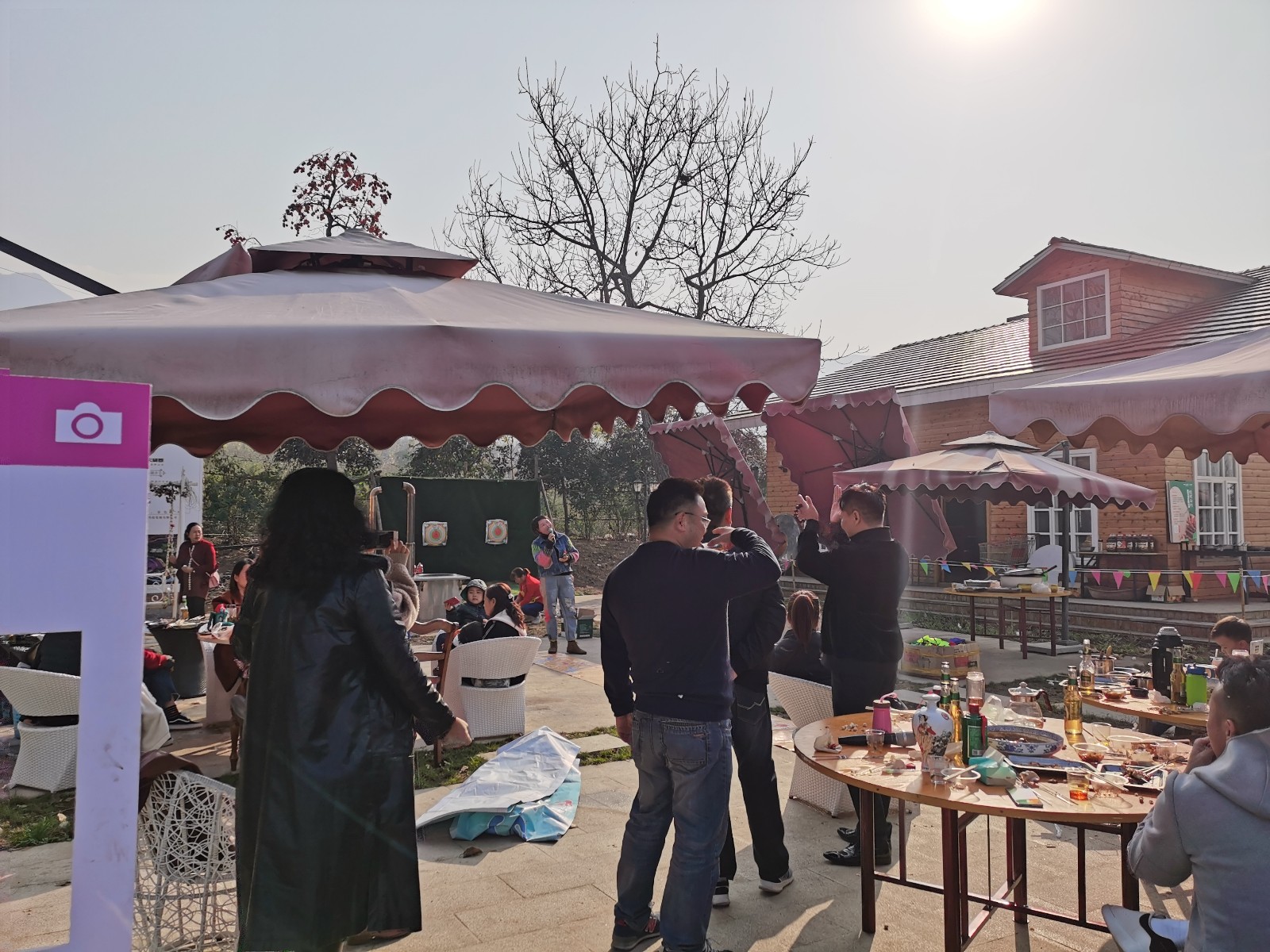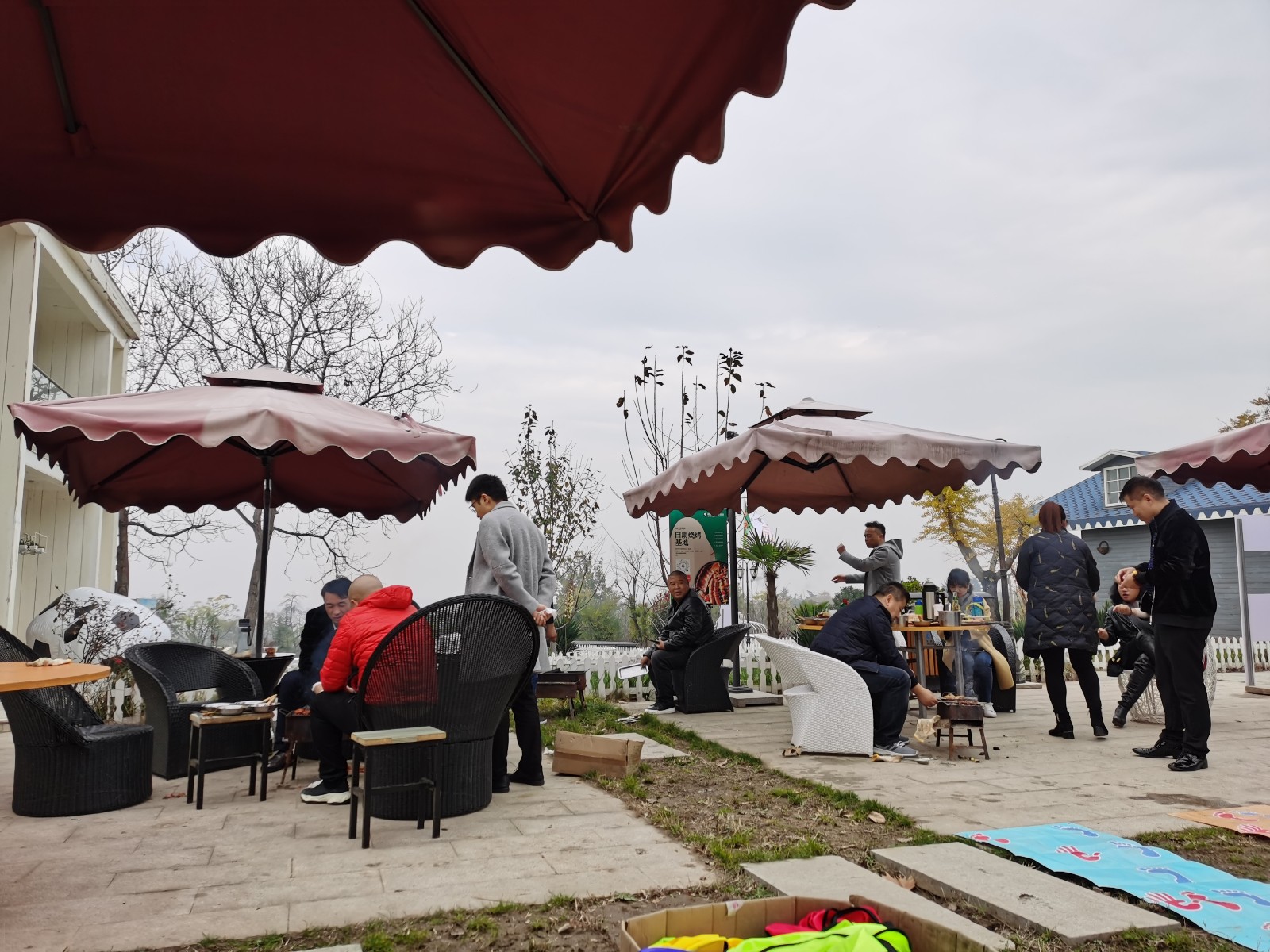 村游网天留郡乡村bbq基地位于花海北侧,和空中木屋遥相呼应,步行穿越花海,仅需三五分钟距离。拓展基地现有厨房1个(含50人接待餐厅)、游客服务中心1个(室内ktv和会议室)、独立别墅2栋及烧烤场地、团建场地和停车场等配套设施。
