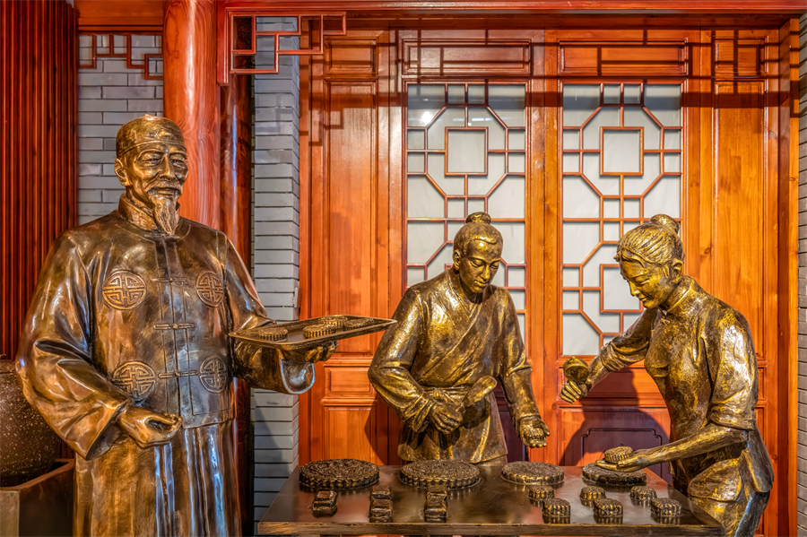 互动体验区:透明玻璃工坊内,匠人现场演示揉面、包馅、压模等古法工序,游客可近距离观察月饼、绿豆糕的诞生过程,展区末端设有试吃台,直观感受非遗味道。展区旁林立传统糕点铺子,掰开香香酥酥的糕点,香气从鼻腔弥漫至心底,满是人世间的烟火气;另有整面墙的糕饼陈列,精致的糕饼礼盒更是走亲访友的优质馈赠品。