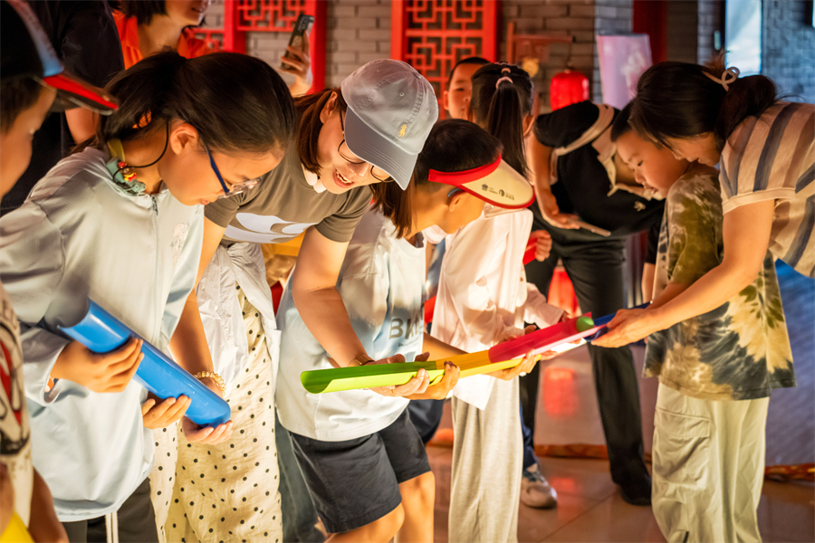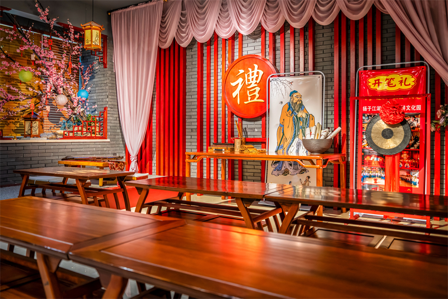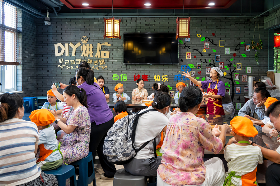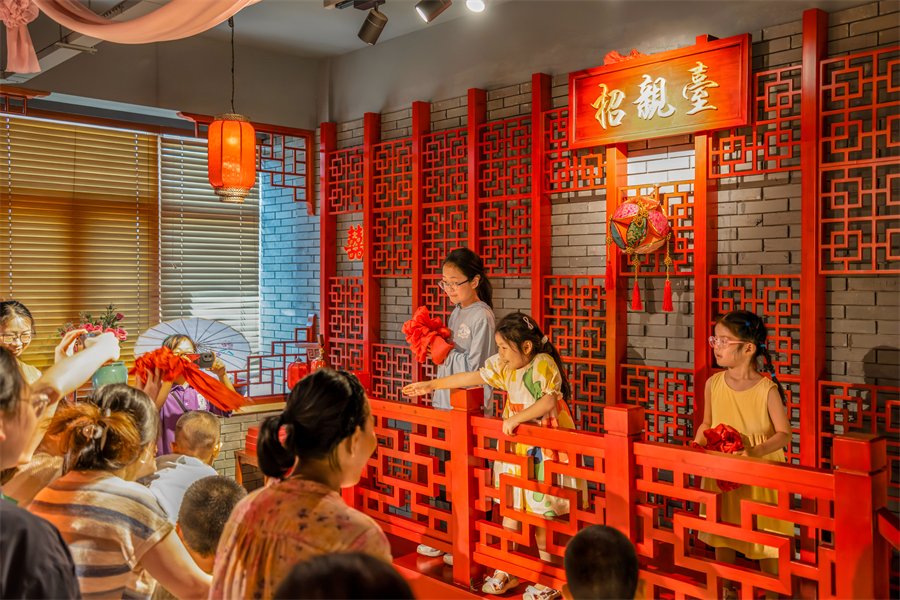 传统技艺体验:开设竹编、剪纸、大漆扇绘制、艾草锤制作等课程;针对儿童特设 “开笔礼” 仪式,通过正衣冠、点朱砂的流程,让孩子感受传统启蒙习俗的庄重;另设文化学堂,开设琴棋书画小课堂,以 “纸上得来终觉浅,绝知此事要躬行” 的理念,引导游客感受 “国潮” 魅力,学后可参与手工实践放松身心。