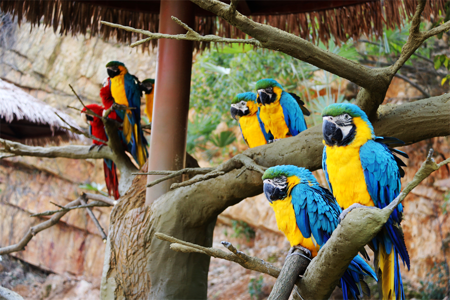 移步彩鹦谷,数百只鹦鹉齐飞时形成的 “彩虹风暴” 格外夺目,交织的鸟鸣声更是宛如自然交响乐,让人沉浸式感受鸟类魅力。