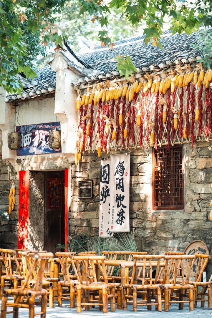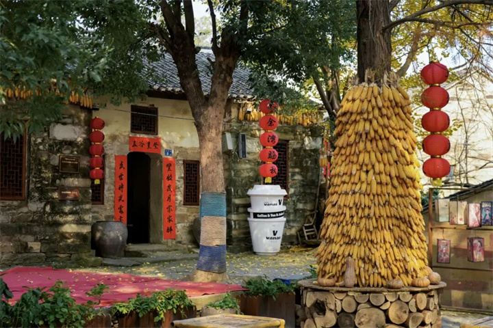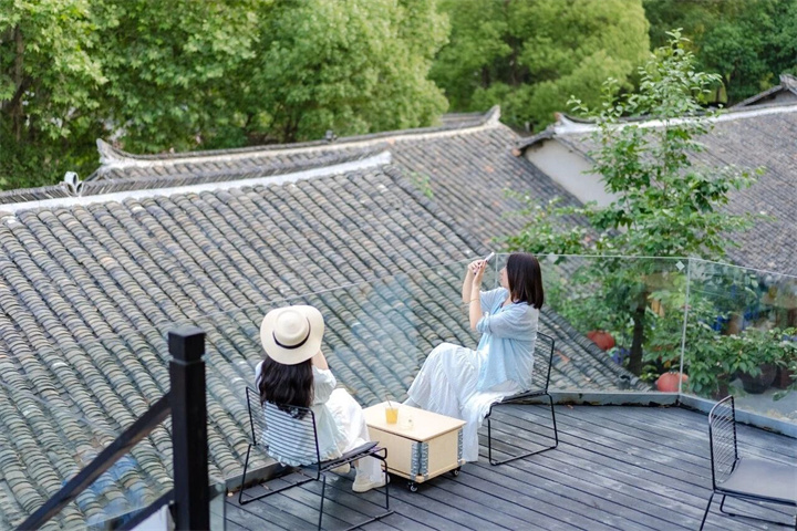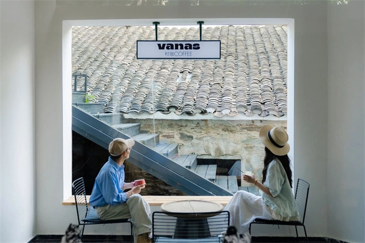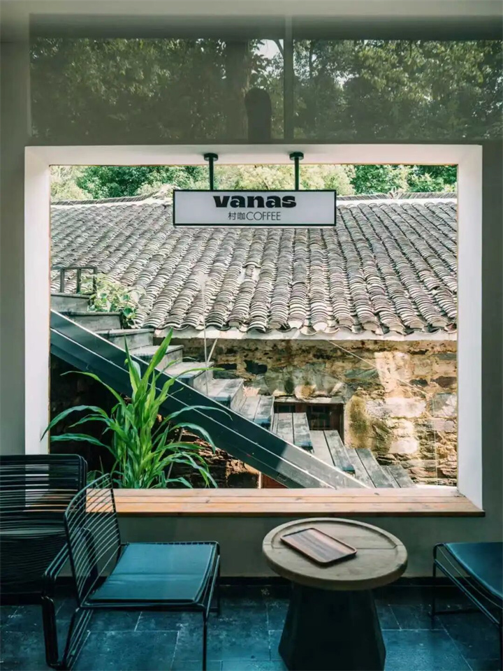 “木兰干砌”老墙、现代侘寂风吧台,每个角落都充满设计感。除了空间设计上的巧妙构思,Vanas咖啡馆还引入“上房揭瓦”的主题创意。你可以登上古村的屋顶,一边品尝手冲咖啡,一边俯瞰整个村落的层叠瓦顶和远山轮廓,体验别具一格的古村风景。