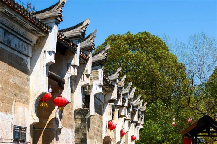 大余湾古村落整体布局考究,75栋明清古建筑遍布村中,古民居外墙上保存有清代手绘彩色壁画上千幅,为华中古民居建筑群所罕见。古村落整体风貌概括为:“前面墙围水,后面山围墙。大院套小院,小院通各房。