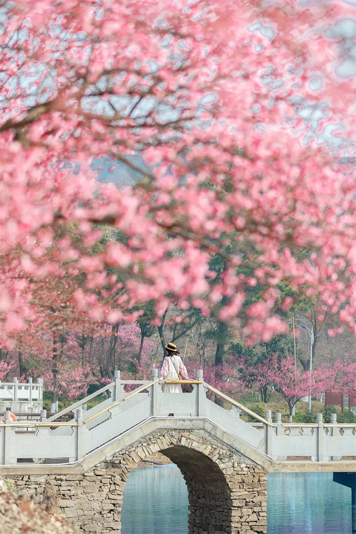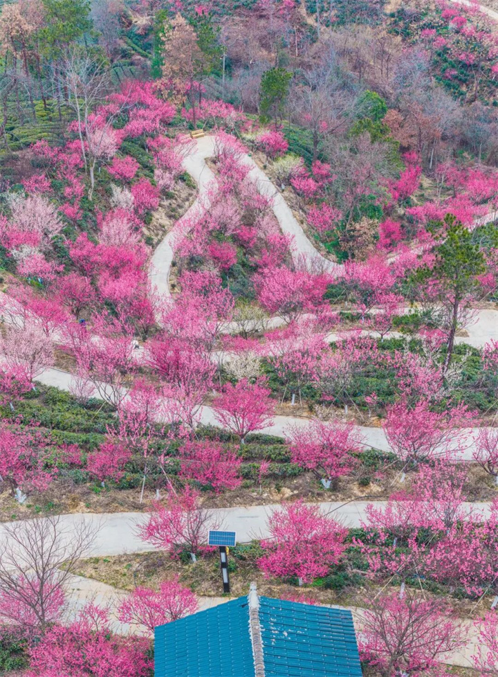 梅谷,十万梅树,亿朵梅花,三百多个品种;樱海,万亩樱花,依山盛开;红顶,红叶如梦,沿山脊直达秋天;梅花还未开尽,高贵而典雅的南极红就开始开了,一路张扬到春的深处。