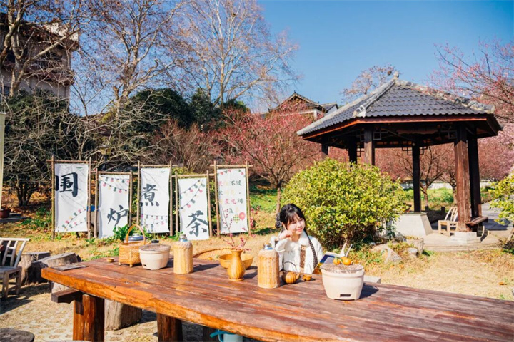 冬季十万余株梅树与满坡茶园相映成趣,呈现出松、竹、梅、茶共生的诗意画卷。游客不仅可以在梅谷、云水湖畔欣赏宫粉梅、朱砂梅等品种陆续绽放,还能在茶工坊文化体验区或湖畔露台体验“围炉煮茶”的雅趣,在红泥小火炉旁,伴着茶香与梅香享用茶点。