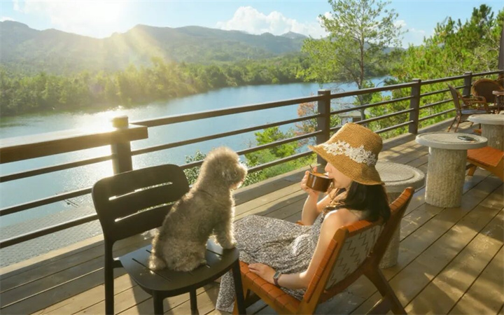 木木乡村咖啡馆,临湖而立。远远望去,那木屋的轮廓便与湖光山色融为一体,透着与自然共生的舒展。在这里,啦哩啦谷追求的 “野奢” 体验,不再是遥不可及的远方。它是一杯捧在手心的咖啡,是抬眼便撞进眼底的湖景,是拂过山野的清风,也是指尖抚摸猫咪的柔软。
