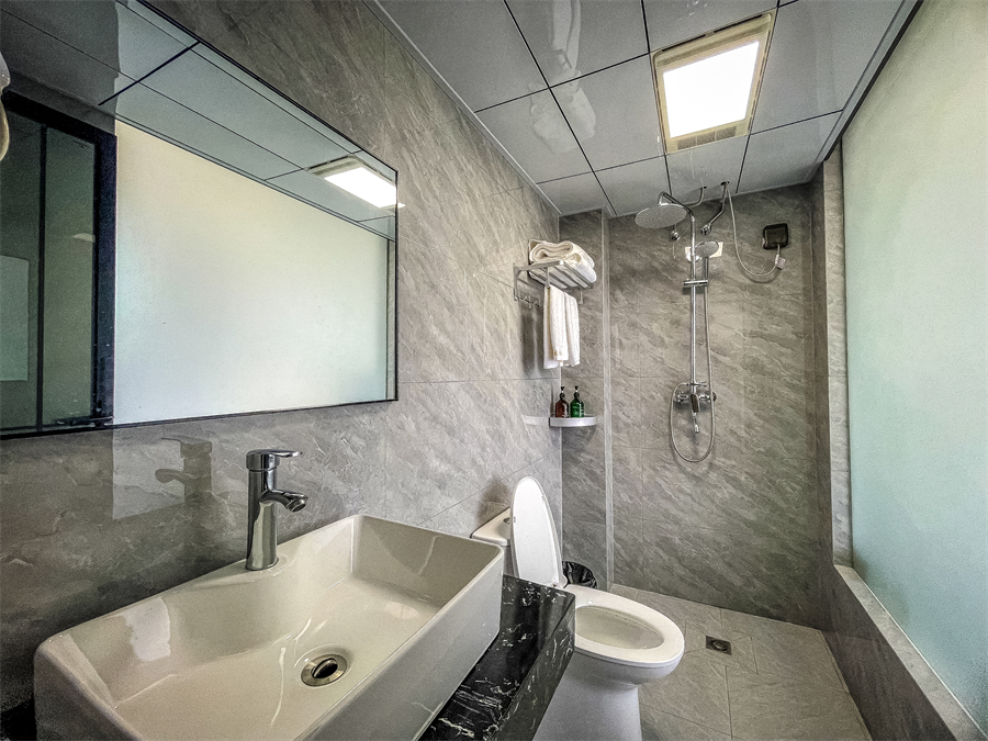 房间内部采用现代简约的设计风格,色调简明,空间敞亮,让人心情愉悦。每间客房都设有独立卫浴,干湿分离,提升度假体验。空调、电视等设施一应俱全,让人深处高山之上,也能想到到现代化的品质度假。