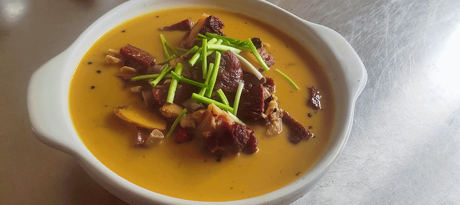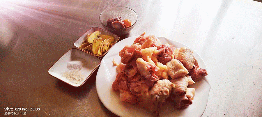 鸡群在野三关高山林间散养,食虫草、喝山泉,生长超 12 个月,肉质紧实鲜甜。以清炖为主,加山泉水、姜片和本地菌 / 山药慢炖 1.5 小时,鸡汤金黄不腻,肉有嚼劲不柴,鲜透骨髓。