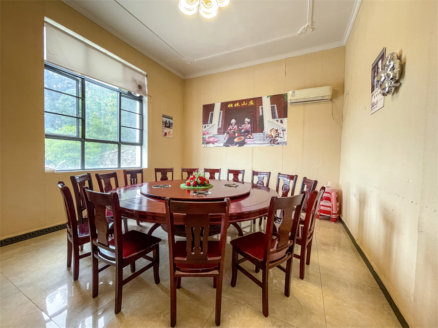 山庄有8 个餐厅内设有 15 个桌位与 8 个包房,可同时接待 100 人就餐,无论是家庭聚餐、朋友小聚,还是小型团队用餐,都能轻松容纳。人均消费 60 元,性价比颇高,让游客以实惠价格品尝地道美味。