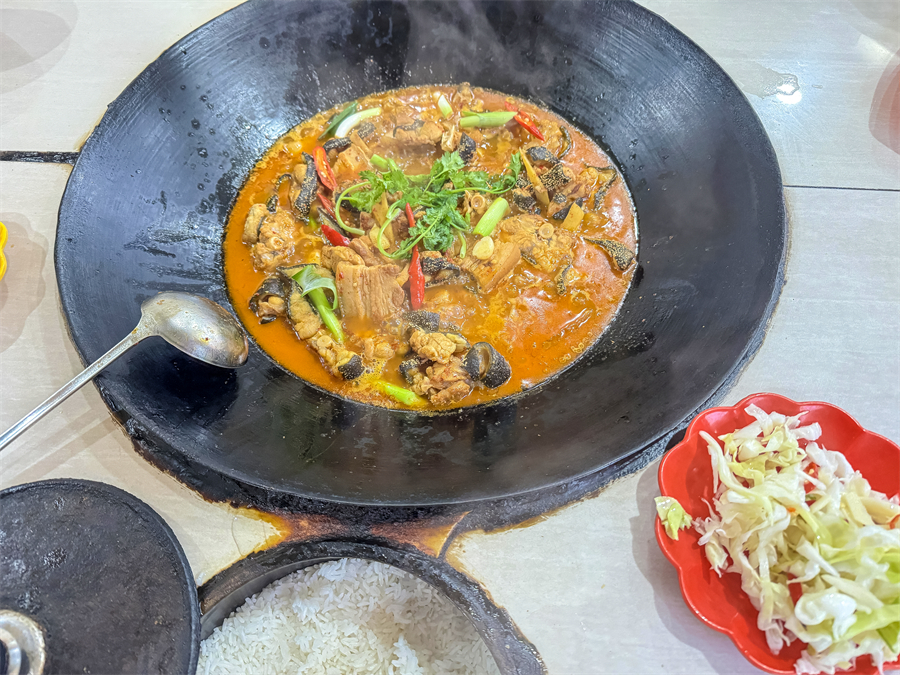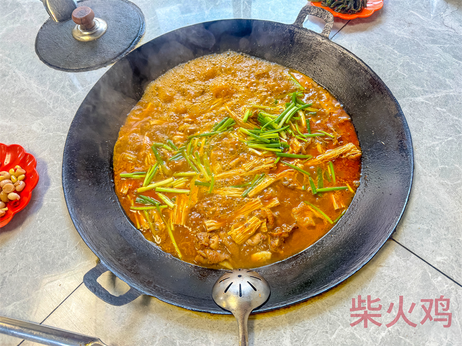 食材是美味的关键,选自家散养跑山鸡(饮清泉啄虫草,肉质紧实),现点现杀。柴火烧热铁锅,煸炒鸡块出香,仅用葱姜提味,慢炖锁鲜,汤浓肉香,还原农家烟火气。