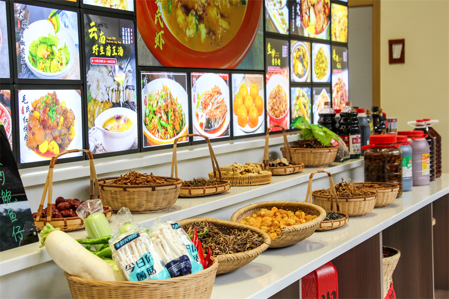 进入店内,琳琅满目的食材依次排开,有新鲜的时令菜蔬,还有各种山野干货,搭配清晰的菜品图片,让食客能更准确地挑选心仪的菜品,避免 “踩雷”,极大地提升了点餐体验。