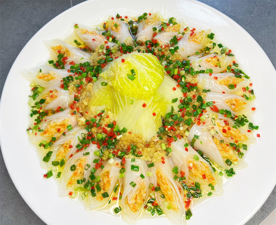 口味毛肚脆嫩爽口,一口下去麻辣鲜香直击味蕾;青椒拇指鲍个头饱满,鲍肉 Q 弹紧实,青椒的清香中和了鲍肉的厚重,清爽又鲜美;蒜蓉虾卷蒸粉丝蒜香浓郁,虾卷鲜嫩多汁,粉丝吸满蒜蓉与虾的鲜味,每一口都超满足;岳阳臭桂鱼是经典湘味,闻着微臭吃着喷香,鱼肉紧实弹牙,咸鲜适口;紫苏煎黄瓜带着独特的紫苏香气,黄瓜外焦里嫩,咸香微辣,解腻又下饭。