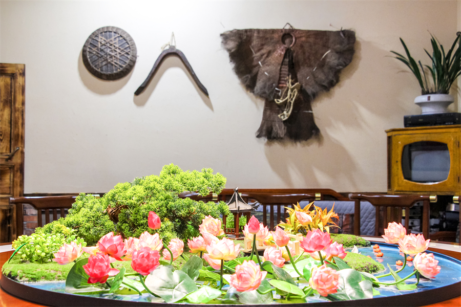 走进店内,传统与现代元素相互交融,木质的桌椅摆放整齐,墙壁上挂着土家族特色的装饰画,或是展现土家生活场景的画作,或是精美的编织物,让人一进店就感受到了浓浓的土家文化氛围。