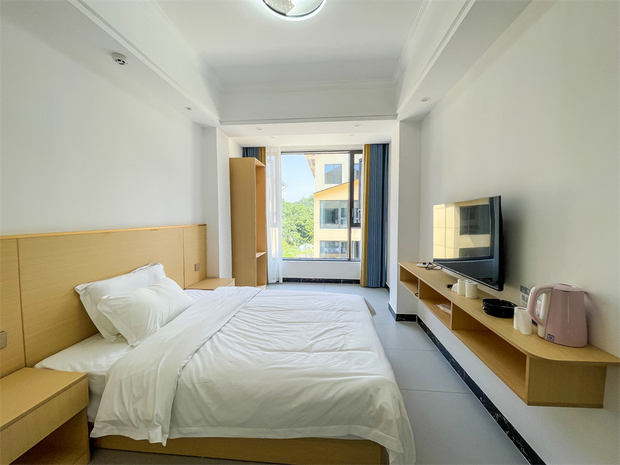 民宿于2023年开业,总计设有16间精品客房,有大床房、双床房等多种房型。房间内部大面积的白色搭配温暖的原木色,设计简约温馨。房间内配备智能马桶,还有24小时地暖,让你在冬季也能拥有温暖舒适的住宿体验。