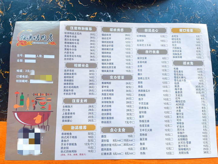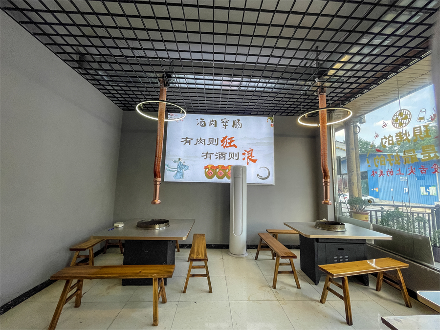 菜品种类多样,招牌菜品包括鲜牛肉、狂浪五花肉、奥尔良鸡翅等,搭配自行研发的拌料和蘸酱,突出炭火烤制的焦香风味。其烤盘经过无烟环保改良,既保留传统炭火香气,又避免烟雾困扰。