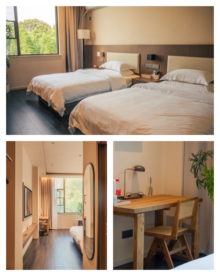 客房延续了温暖的风格,不像酒店,更加一个等你入住的家。窗外树木茂盛,自然触手可及。从休憩角落、起居空间到干湿分离的卫生间,考虑到旅人的每一处需求,让住的体验回归纯粹。