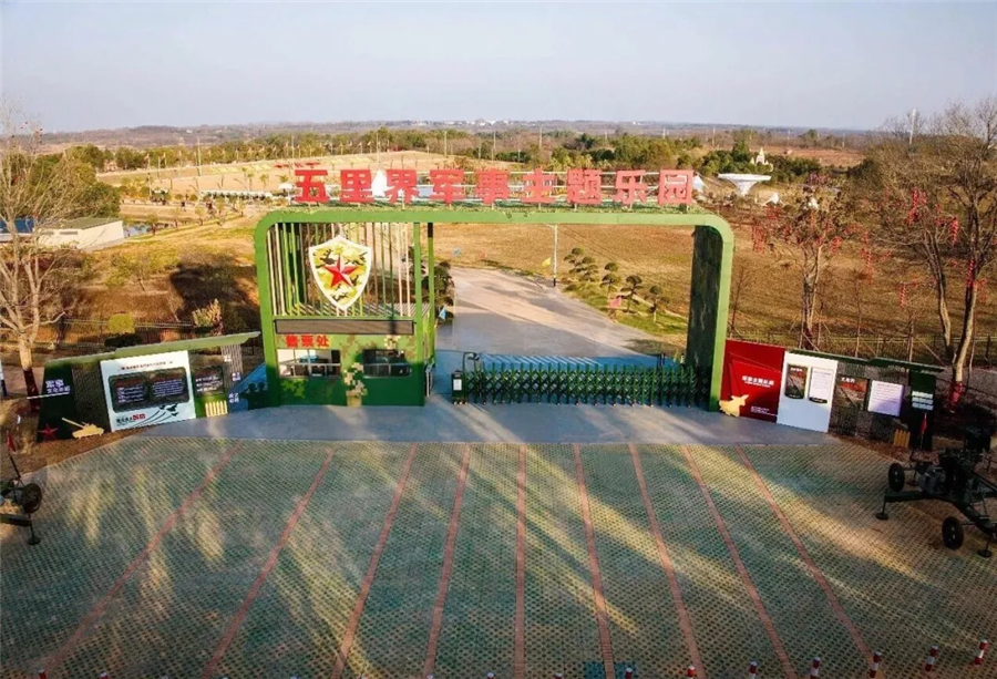五里界军事主题乐园坐落于武汉江夏五里界街道孙家店村,国防教育主题乐园,占地 806 亩,是集科普研学、沉浸式体验、亲子休闲于一体的户外基地,也是武汉中小学生实践教育营地与省级重点国防教育研学点。
