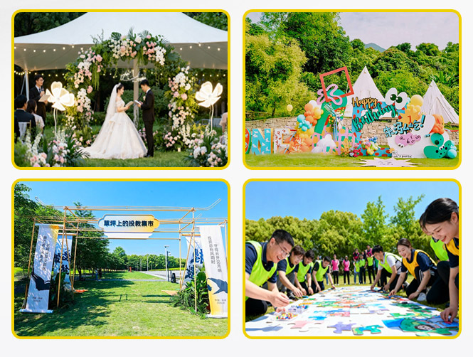 营地30亩户外大草坪搭配高清LED超大屏,可量身定制企业团建、草坪婚礼、生日派对等多元活动,支持直播互动与创意布景,专业团队提供一站式服务,为您打造专属户外盛典。