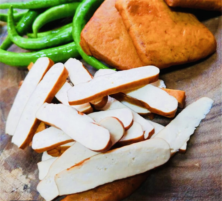 税家豆干延续了巴东豆干经典的工艺,香料的风味深度渗透进豆干肌理。成品豆干色泽淡红诱人,纹理清晰可见,口感外韧内嫩、紧实筋道,咀嚼间满是醇厚的豆香与天然香料的复合香气,咸香适口却不油腻,尽显传统工艺的健康与本真。