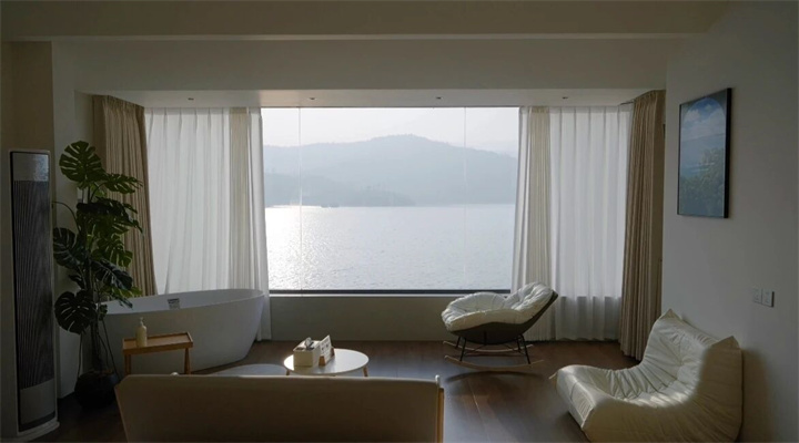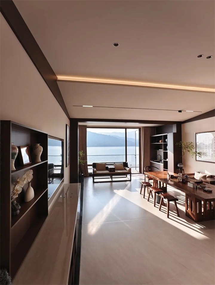 城市的节奏愈紧,愈想寻一处能裹住松弛的去处。在木兰樾境别墅群的深处,藏着一栋名为 “木兰·见山观海” 的度假民宿 —— 推窗是木兰湖的烟波,抬眼是远山的黛影,湖山的意趣,织进了新中式的肌理。