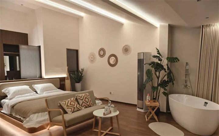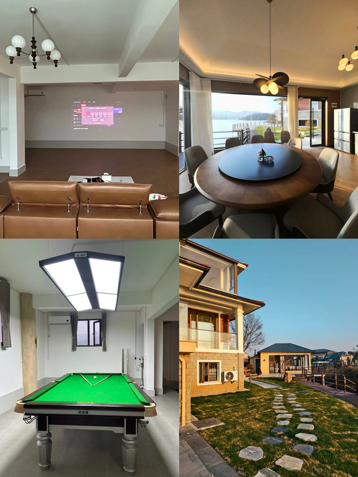 智能马桶、亚朵同款记忆棉枕,让每一晚休憩,都是 “云端级”的舒展;桌游、桌球、麻将室依次排开,亲友围坐嬉戏、推杆竞技,热闹被独栋的私密妥帖裹住,只留畅快欢聚;皮质沙发围合的家庭影院,窝着观影或唱K时,湖风从窗缝漫入,是无需张扬的沉浸式松弛;