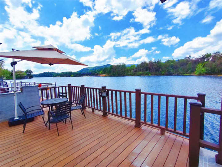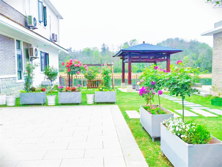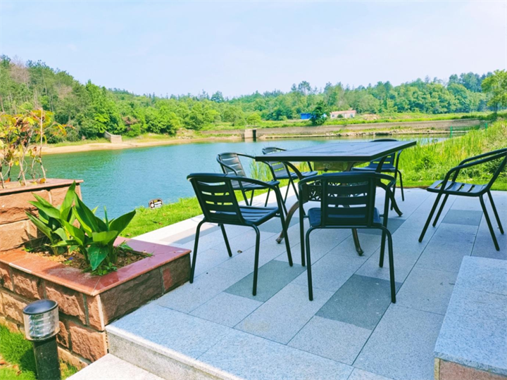 露台配设休闲桌椅与遮阳伞,直面澄澈湖泊,午后煮茶小酌,湖风裹着水汽漫过杯沿;庭院被花箱植载簇拥,一座休闲凉亭藏于绿意间,适配轻声茶歇、闲坐畅谈,让自然与雅趣在此共生。