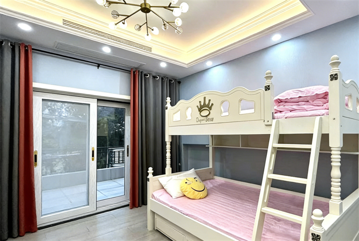 细节处展现法式优雅调性:雕花软包床头,精致皮质床具,墙上的装饰挂画……既有设计感又不失温馨。别墅共3层,建筑面积达200㎡,5间房,8张床,可住10-12人,无论是家庭出游、好友聚会还是公司团建,都能轻松容纳。