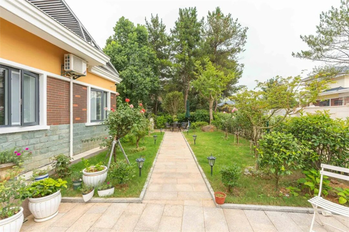 走出室内,百余平私家花园是天然的治愈场。草坪铺展,花木扶疏,石板路曲径通幽。清晨在鸟鸣中自然醒来,傍晚就到露台闲坐,看夕阳缓缓沉入林海。在这里,随时都能与自然撞个满怀。