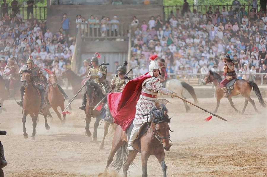 《花木兰·云中战歌》(日场):这是一场真正燃到炸裂的实景马战!在1.8万平方米的古战场上,刀光剑影、炮火连天、沙尘扑面,360°沉浸式还原木兰替父从军的英雄传奇。现场掌声与惊叹不断,震撼人心。