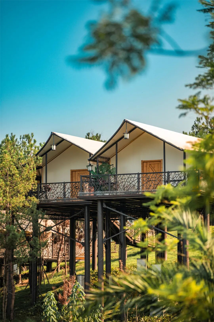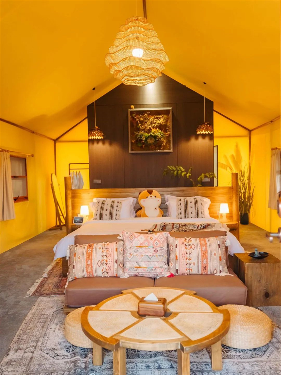 巫傩部落:位于景区内,8顶白色大帐篷依山而建,是野奢体验的典范。房间配备智能家居,落地玻璃将草原美景尽收眼底。内部设计融合波西米亚、原始部落等风格,配有品牌卫浴和设计家具,好看、好睡、更好拍。