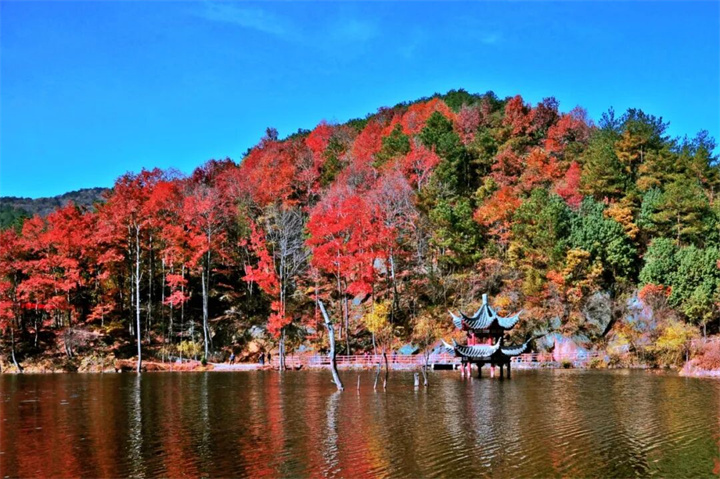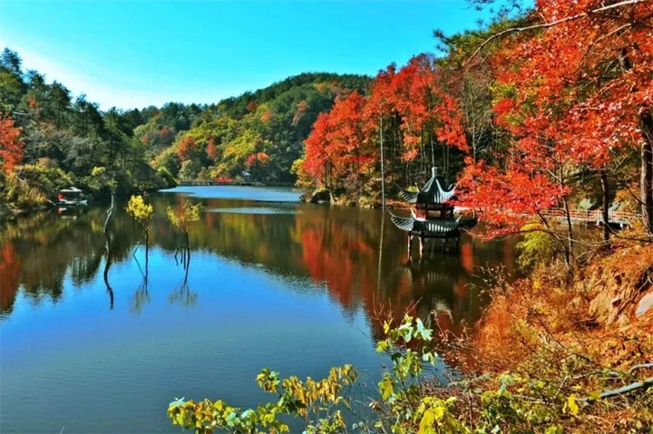 万亩森林中,青枫、红枫、乌桕树等秋季红叶树种达5000余亩,搭配3万多株银杏树和千亩茶园,成为武汉及华中地区秋季红叶观赏的亮点景区。斑斓的枫叶,寂静的山峦,在这儿展开一幅宁静的画卷。红的让人惊叹,美的让人着迷。