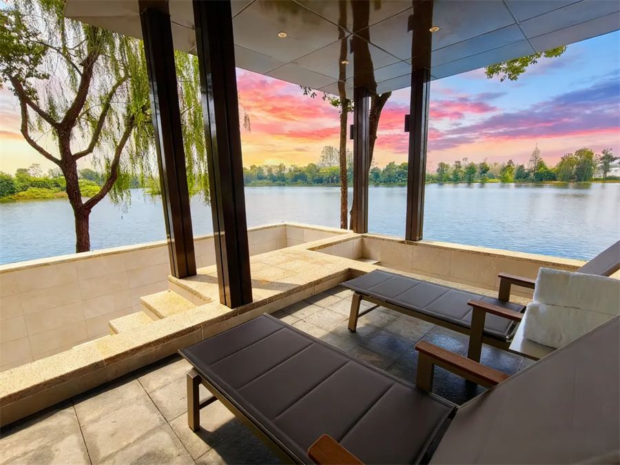 悦玖・滨湖雅苑别墅:主打“一院一池一温泉”的墅居理念,拥有私密庭院、私人泳池及岩板温泉泡池,专为追求极致私密与专属感的高端家庭及团体客户打造。