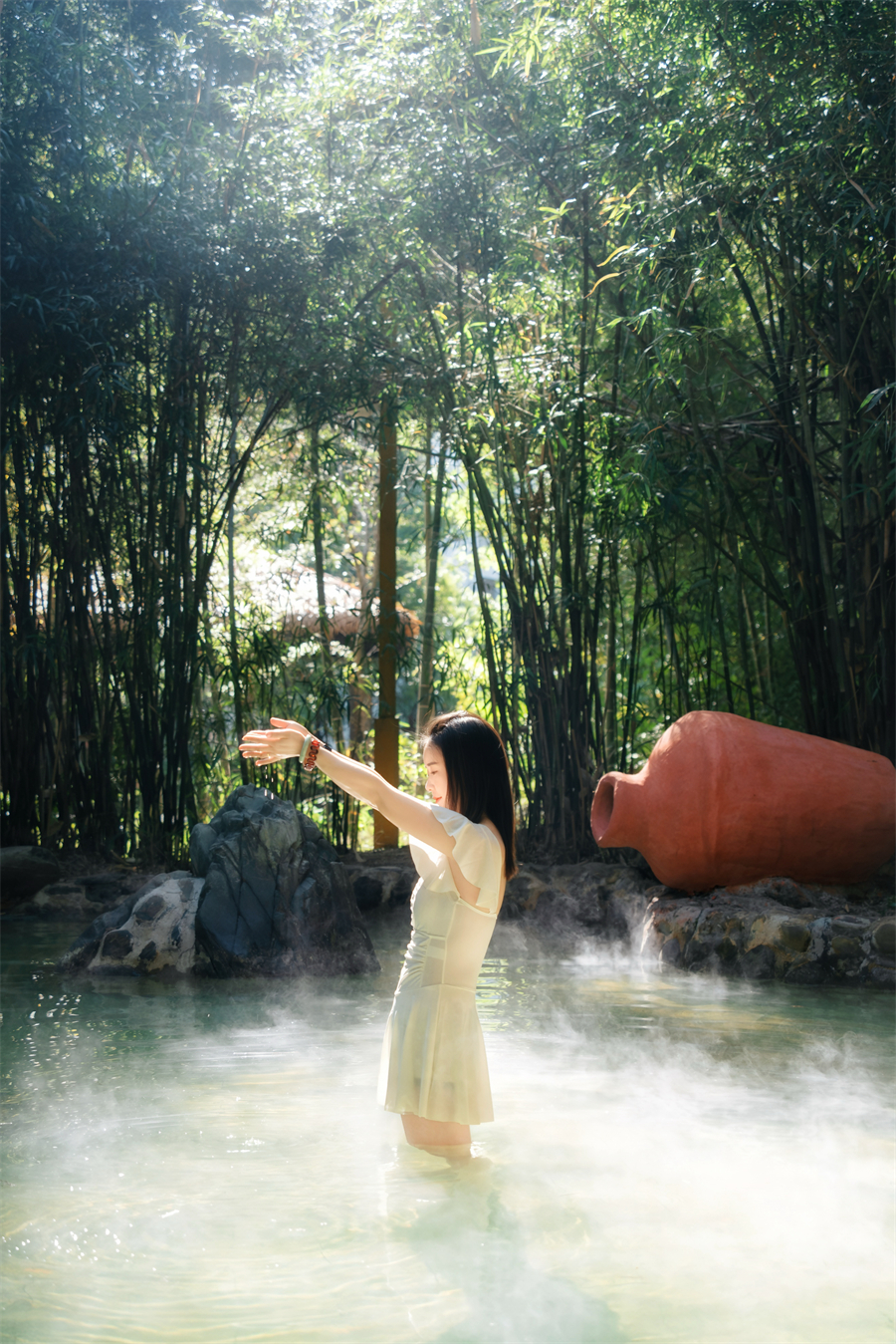 悦兮半岛的卓越,根植于其万年稀世的珍贵泉源。温泉源自地下深处,出水温度高达76℃,属于稀有的偏硅酸型医疗热矿泉,富含氟、镭等多种对人体有益的微量元素。度假村秉持“不稀释、不加料、不重复使用”的运营原则,确保每一池泉水都原汁原味、洁净卫生。