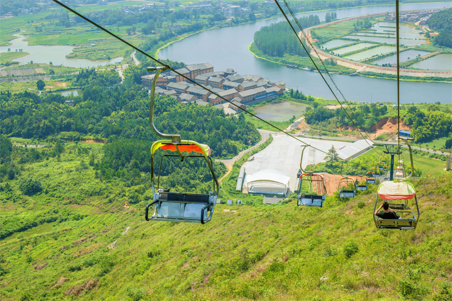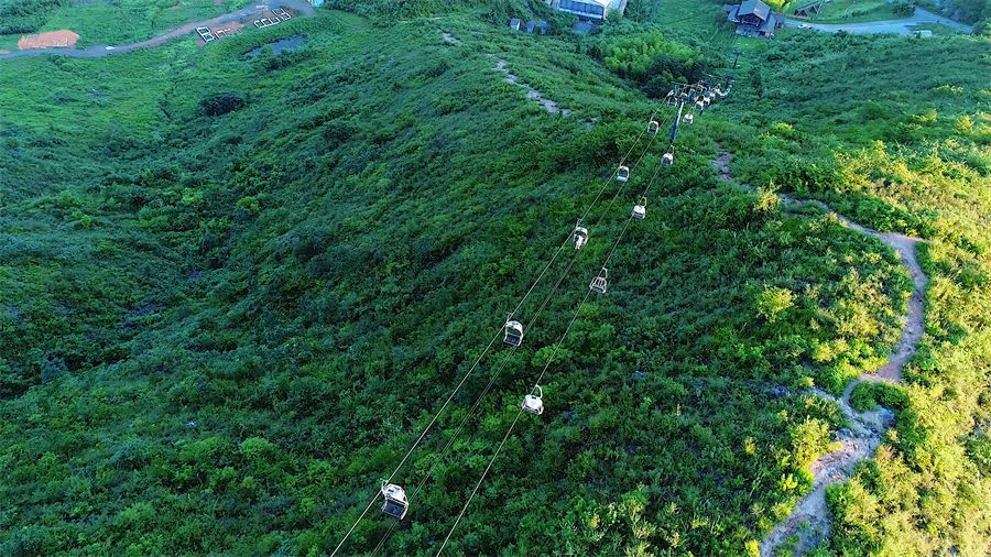 燕子垭山顶是浪口温泉度假区内的一个制高点,既可乘坐索道到达山顶,也可以徒步登山,一览众山小。