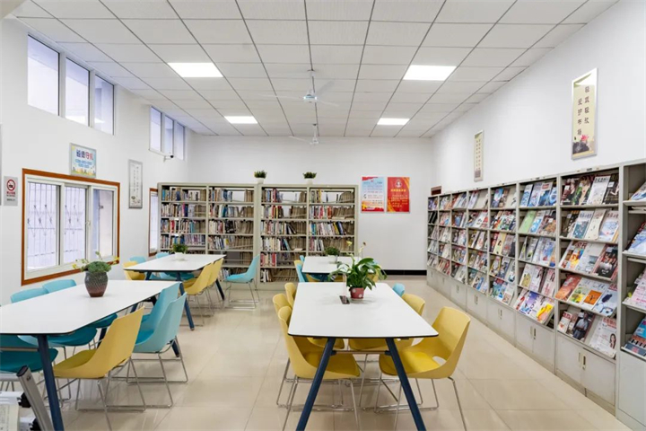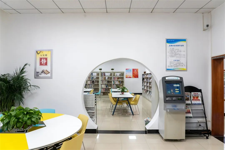 阅览室整体布局温馨,图书资源、人文装饰、休闲座椅与绿植景观相得益彰,同时也可以提供智慧阅读、线上选书等科技创新的阅读方式与阅读途径。