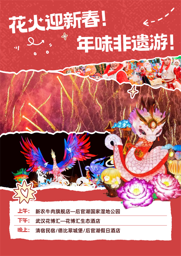 新春活动:“花火富贵年”系列演艺,绚烂灯会、非遗火秀、国风巡游、打铁花等。
