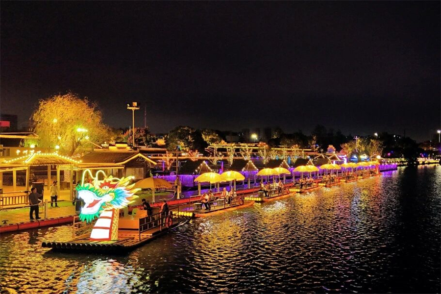 中州府生态园:住进中式园林,双节期间开启夜游盛宴,体验竹龙泛月,看非遗表演、歌舞演艺。