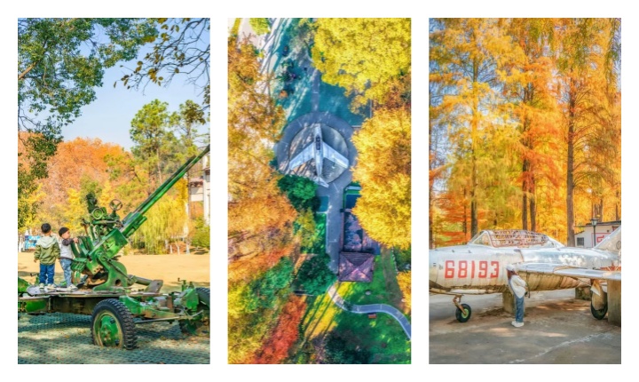 在熊廷弼公园,与退役大飞机、熊廷弼雕塑、曲廊八角亭等地标性景点合影,漫步于幽静的竹林,探访江夏革命纪念馆,每个转角都藏着值得定格的诗意。沿着步道爬上山,还可以解锁山海同框的美景。 等到11月底(目前还未完全变色),公园内的水杉林自动切换成美拉德色系。阳光倾洒在水面和水杉林的入口,自动加上了柔光滤镜,一个绝佳的拍照机位就get了