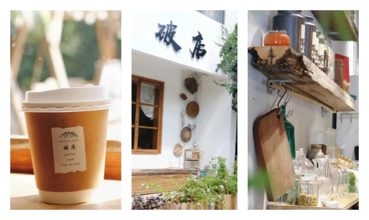 下山后,拐去八分山脚下的陈博士湾。入口处的破店咖啡,装修带着复古的质感,原木桌椅与粗陶茶具相映成趣。这里主打手冲咖啡和围炉煮茶,室内是咖啡香的氤氲,窗外是八分山绵延的山景,小众又惬意。