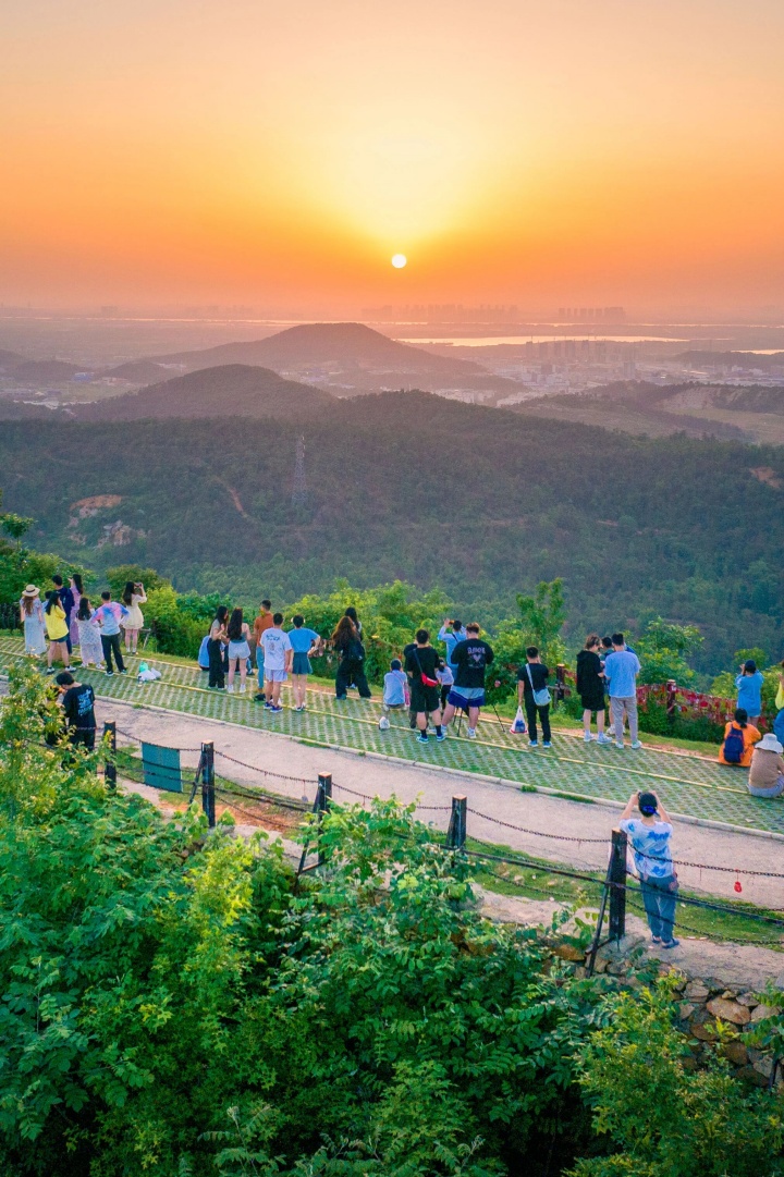 八分山的日落,从不让人失望。沿着蜿蜒的山路一直向上,抵达山顶,等暮色将天空染成粉紫,山林湖泊镀上了金黄,城市在脚下缓缓亮起灯火。