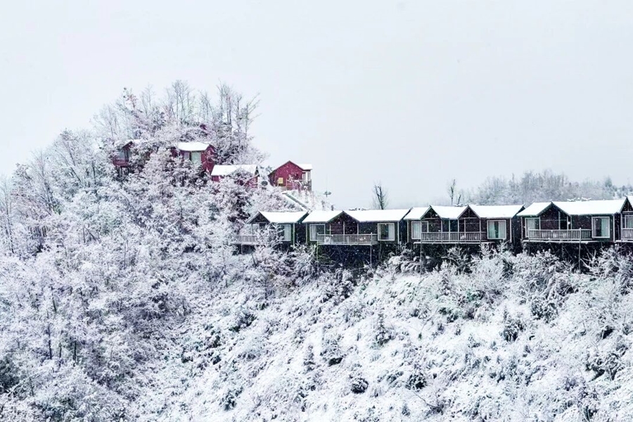 上午:抵达尧治河度假区,这里被誉为“襄阳小神农架”,平均海拔1600米,森林覆盖率达95%,是名副其实的“天然氧吧浴场”。冬日的尧治河,更是保康大地上最美的水墨画,山林、原野、房屋被白雪覆盖,勾勒出一幅奇妙的雪白仙境。