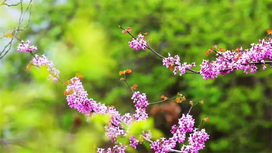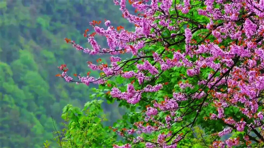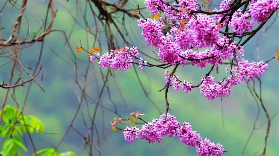 这里的山坡会被漫山遍野的紫荆花染成浪漫的紫色。花枝缀满山坡,与田园村落相映成趣,人少景美,沿着村间步道慢慢走,随手一拍都是清新治愈的大片。