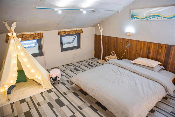 巽五/坎六/艮七 LOFT (单人床 1.2*2m*2+双人床1.5*2米*1),面积30平方米,含4人早餐+一个正餐