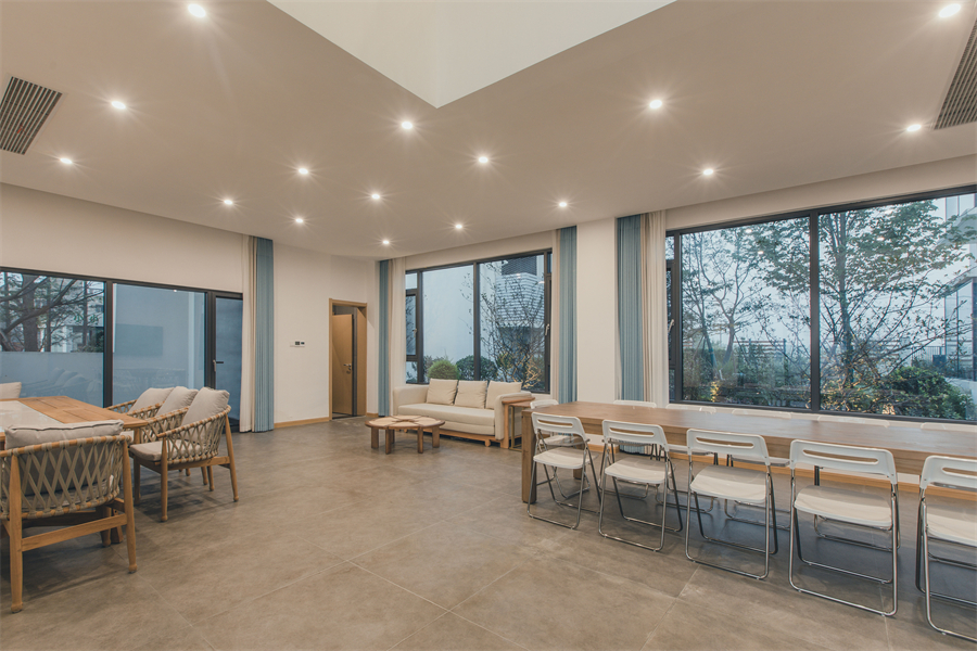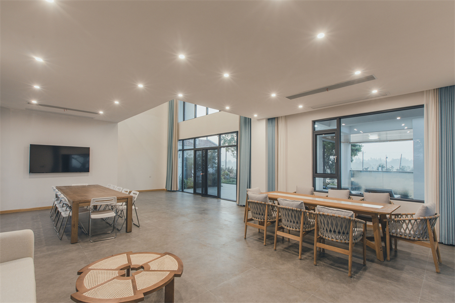 8人长桌一张,沙发区,独立卫生间,泡池(暂不能使用)